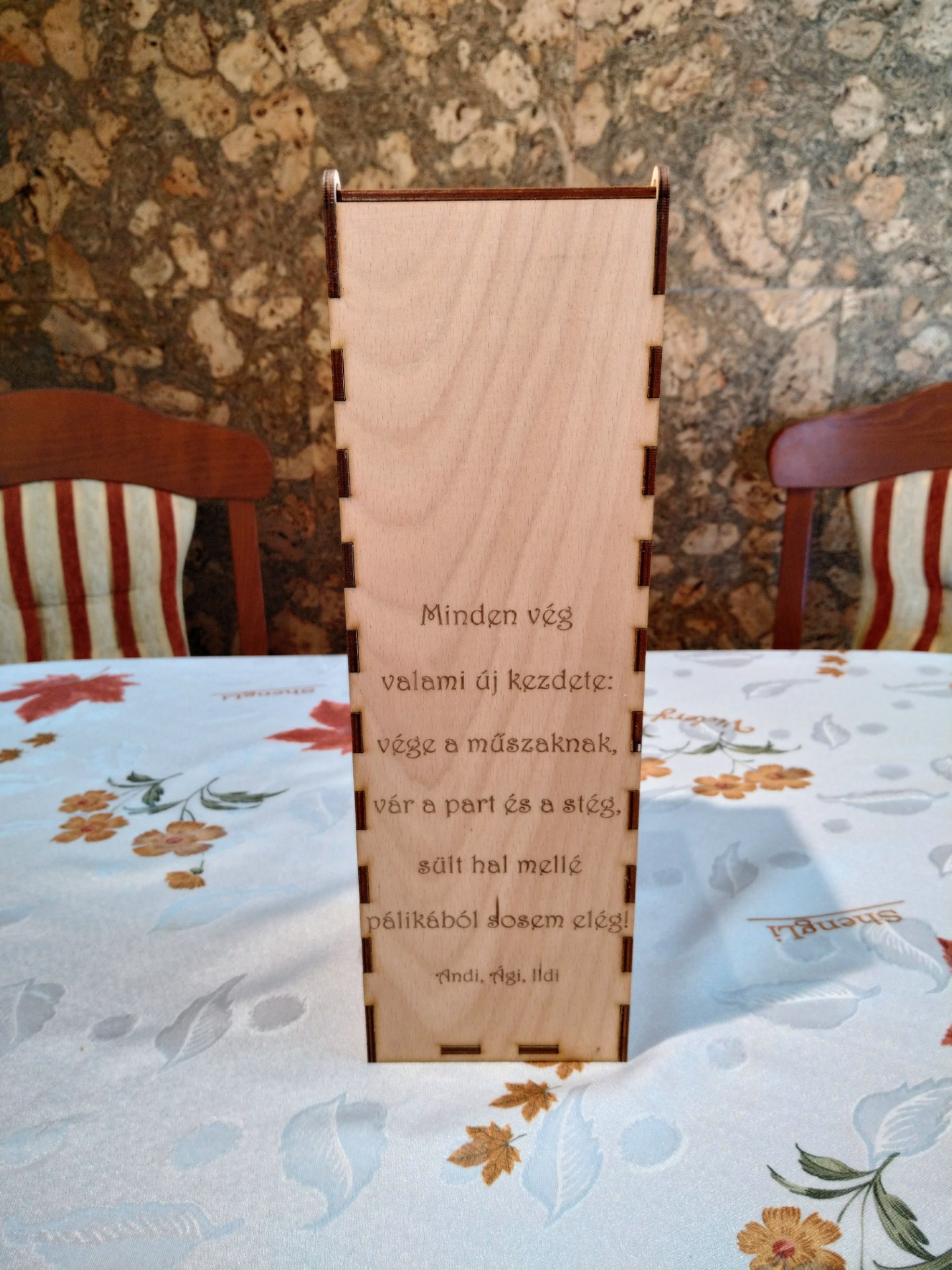 A doboz oldalait részletgazdag, relief jellegű díszítés teszi különlegessé, míg az előlap és a hátoldal teljes mértékben egyedi szöveggel kérhető. Ideális választás születésnapra, nyugdíjazásra, ünnepi alkalmakra vagy bármilyen eseményre, ahol fontos a személyes üzenet.