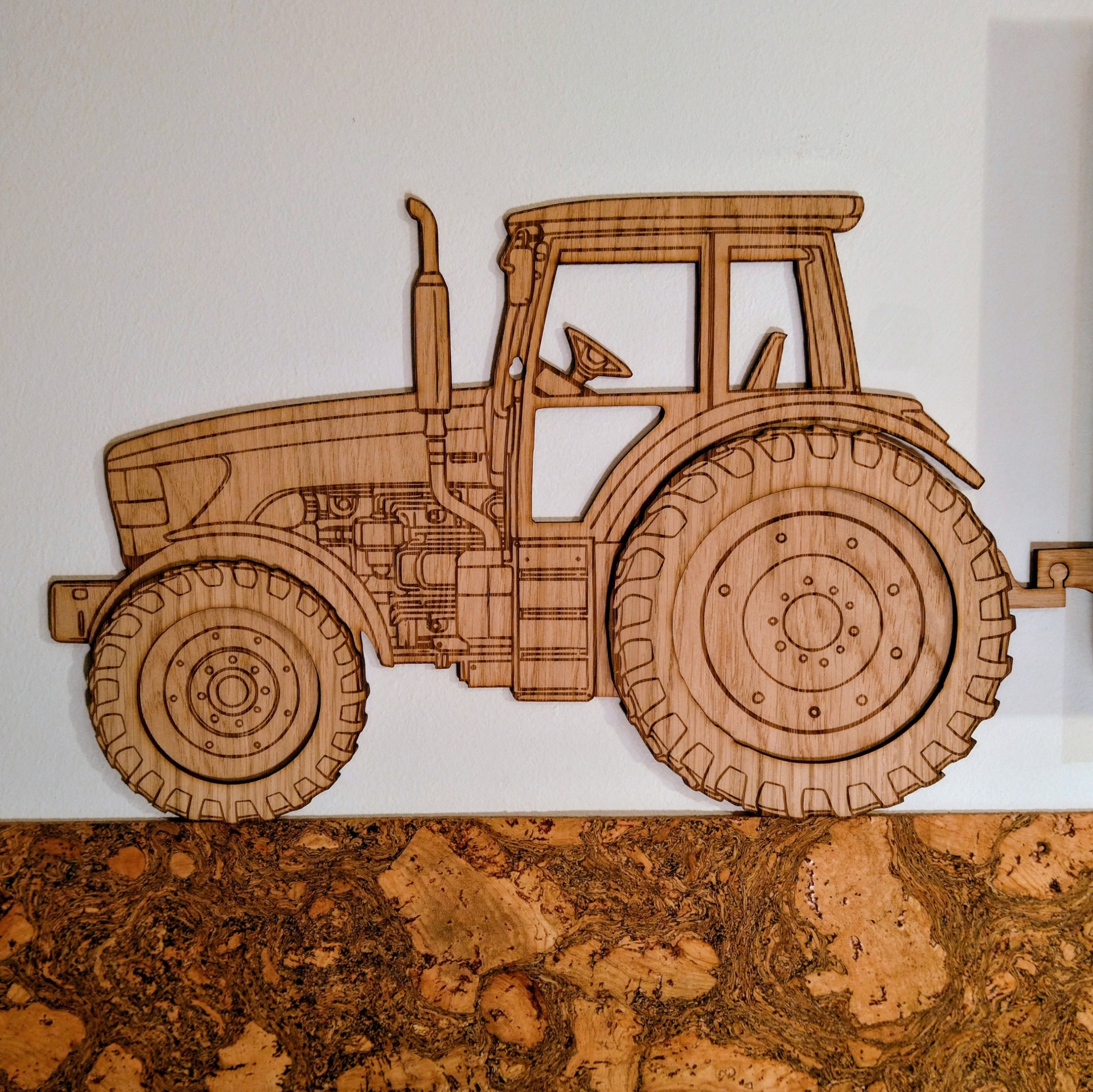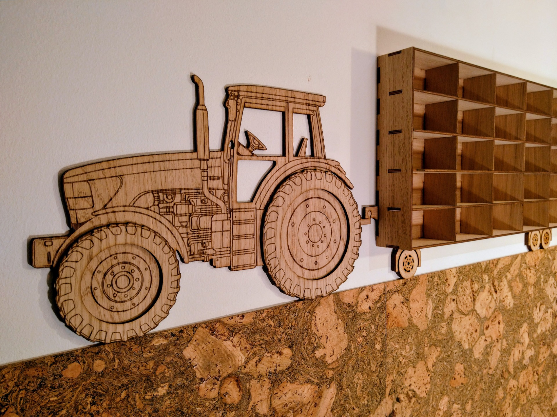 - Traktor egy pórkocsival 100 × 30 × 5,5 cm (szélesség × magasság × mélység)