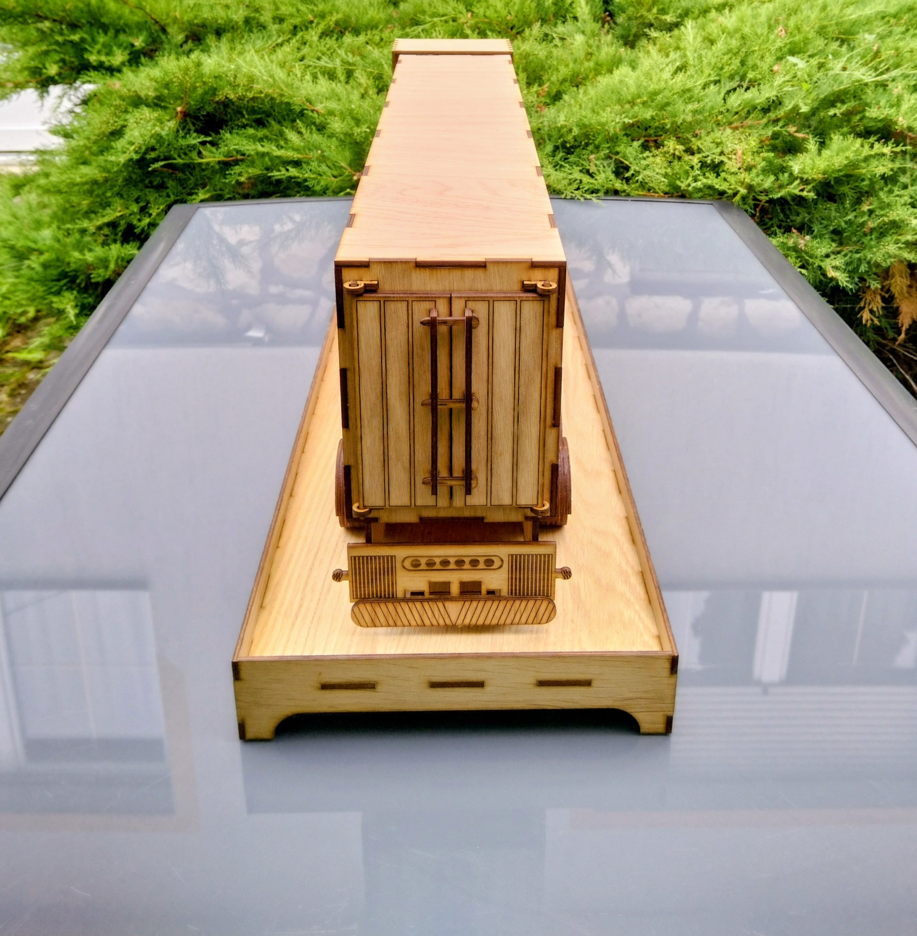 Egyedülálló, kézzel készített, prémium minőségű fa modell, amely praktikus italtartó funkcióval is rendelkezik. A gondosan megmunkált faelemek és a realisztikus formavilág a kamionok világának eleganciáját és erőteljességét idézik.
